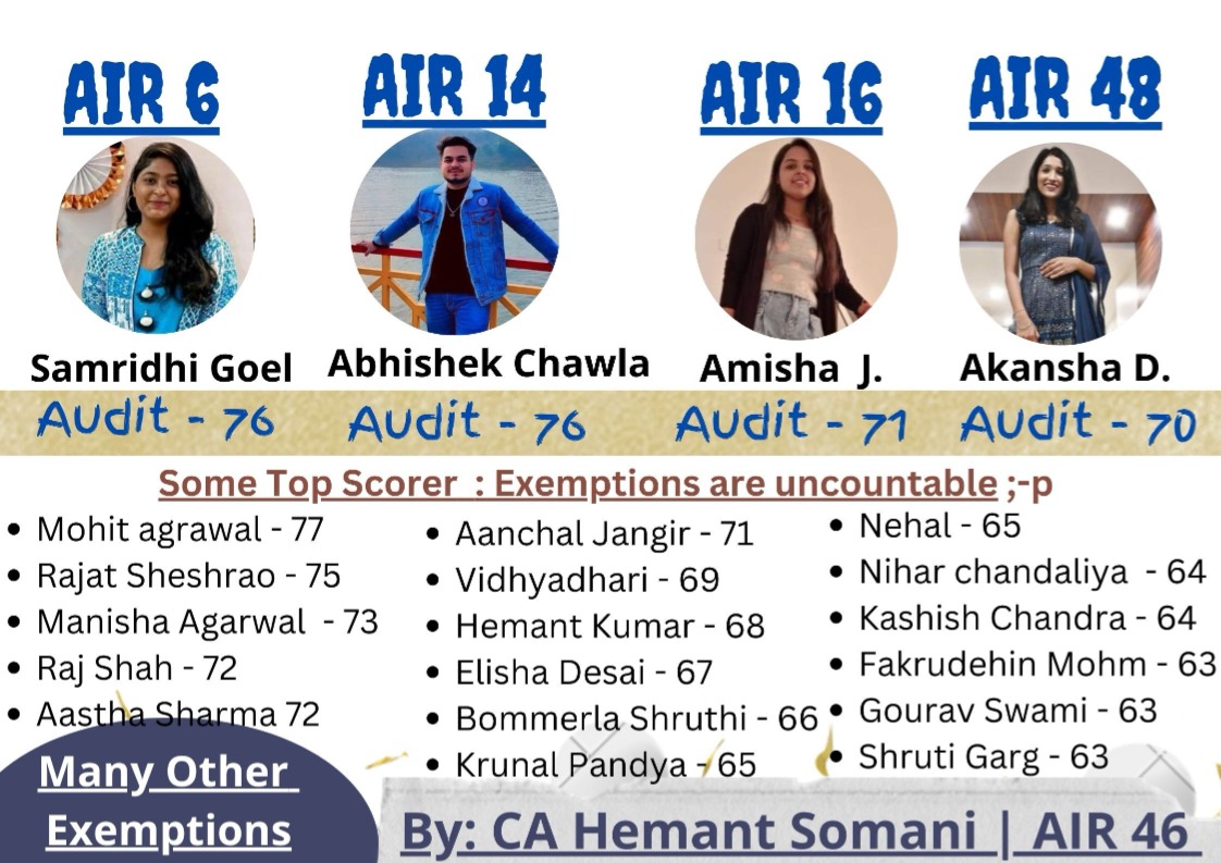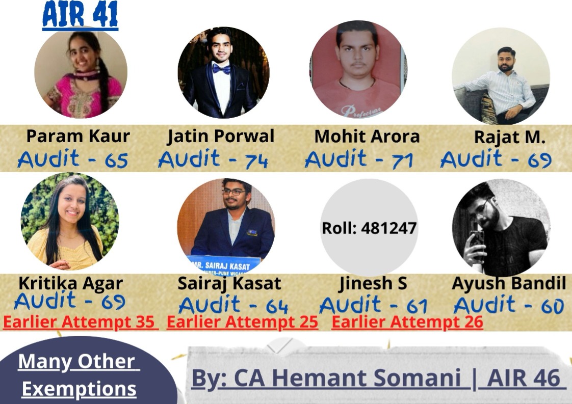 Hey! This is CA Hemant Somani, CA By Profession & Mentor by Passion. I secured All India Rank 46 (AIR-46) in CA Final examination along with exemption in 7 Papers despite being infected with Covid 19 just 15 days before exams.